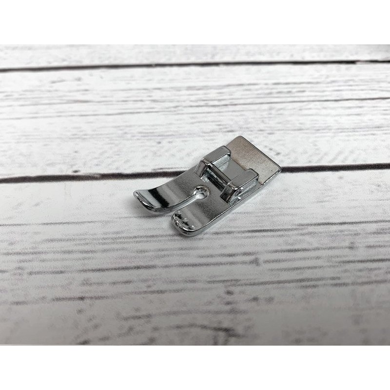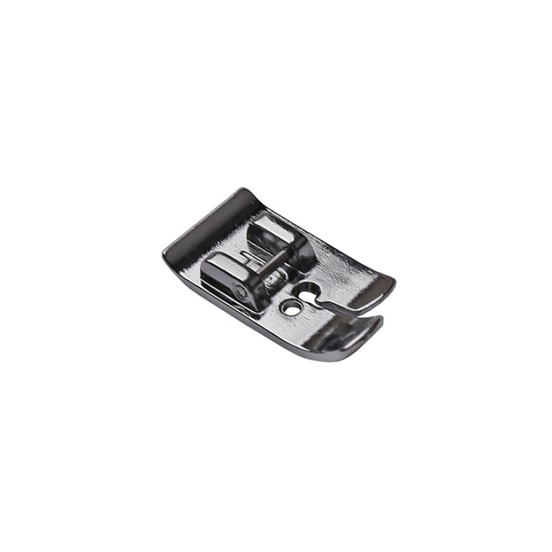 Часто применяется для очень тонких или трудных тканей. У этой лапки плоская обратная сторона, она создает давление при прохождении ткани по рейке. Круглое отверстие для прохода иглы предотвращает пропуск стежков и стягивание строчки.
