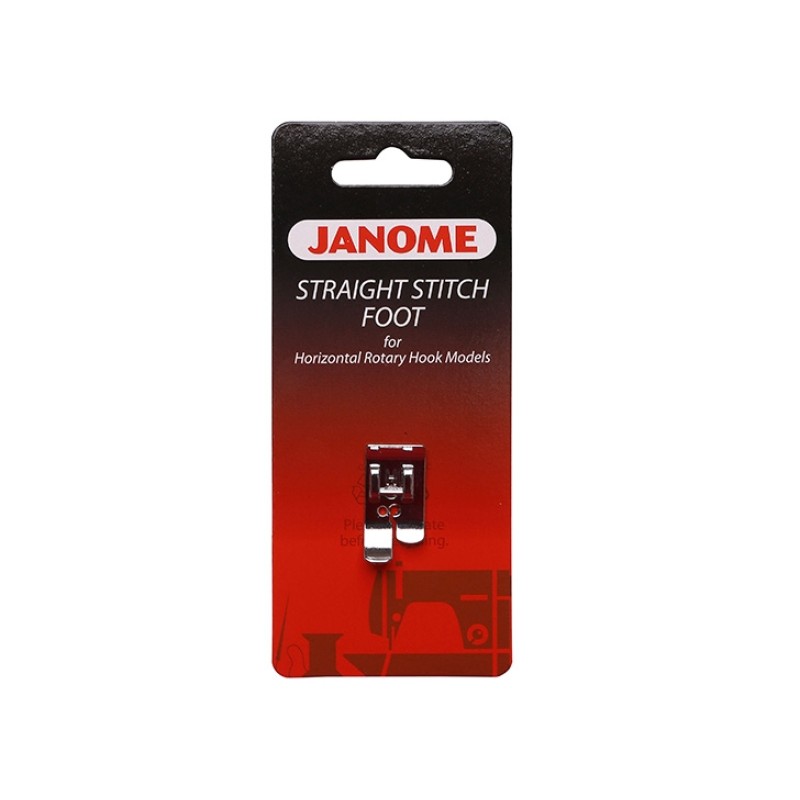 Прямострочная лапка (артикул 200-331-009) предназначена для швейных машин Janome с горизонтальным челноком и шириной зигзага 5-7 мм.