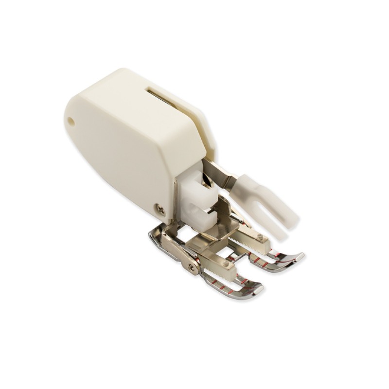 Шагающая лапка (верхний транспортёр) очень удобна при шитье виниловой ткани, синтетической кожи, шёлка, атласа и др. материалов трудных для подачи обычным транспортёром.