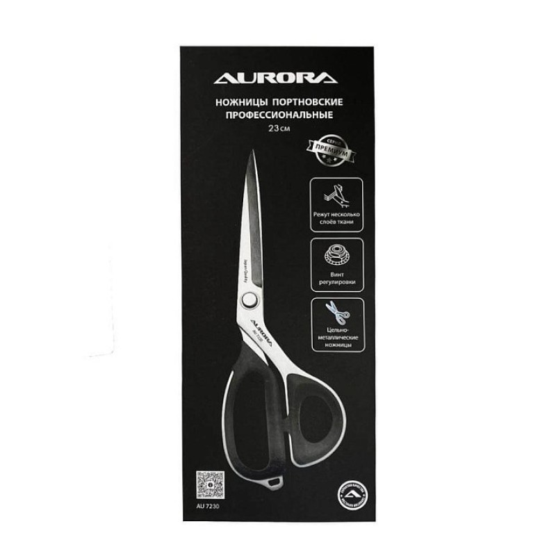 Ножницы портновские профессиональные с цельнометаллические, с острыми кончиками и мягкими ручками Aurora AU 7230 предназначены для раскроя всех типов тканей.